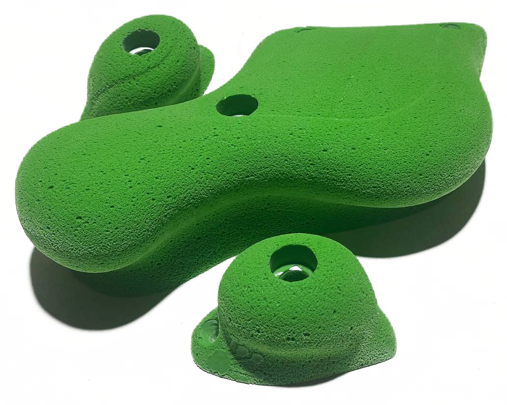 Комплект зачепів для еталонної траси швідкістного лазіння. Матеріал Поліуретан Колір зелений (RAL6037) Розмір 269х169х69 1шт 88х51х45 5шт